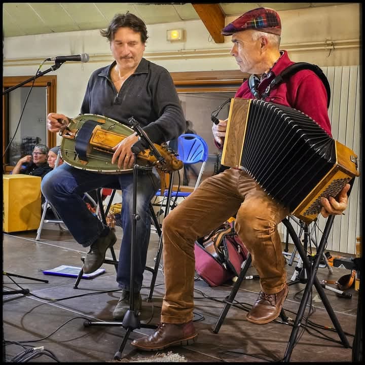 Alain Reuge (La Croix Feuillée) à l’accordéon et Thierry Balabau-Latour à la vielle, parcourront le centre de la France à travers les musiques du Morvan, d’Auvergne ou du Berry, et les compositions de Michèle Chevrier-Reuge, de Bach…